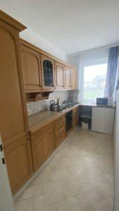 Kuchyň plně vybavená + lednička, mikrovlnná trouba, 4plotýnkový vařič, elektrická trouba.