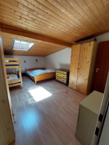 Ložnice č.1: manželská postel + patrová palanda pro 2 osoby (90x200cm), samostatné WC s umyvadlem a sprchovým koutem