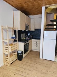 Kuchyň plně vybavená + lednička, mikrovlnná trouba, indukční deska, el. trouba.